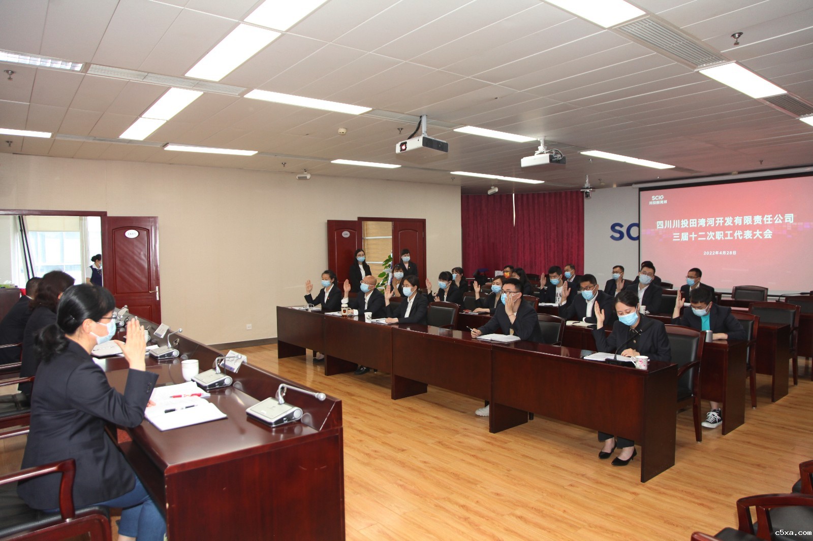 4月28日,公司在电站现场208、成都远控1801会议室召开公司工会三届十二次职代会。会议由党委副书记、职工董事、工会主席杨坤主持。公司班子成员、职工代表、列席代表共45人参加会议。